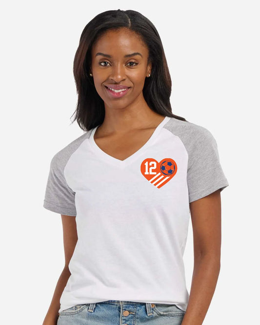 "Orange Boys Soccer Senior Mom" Personalized V-Neck Tee